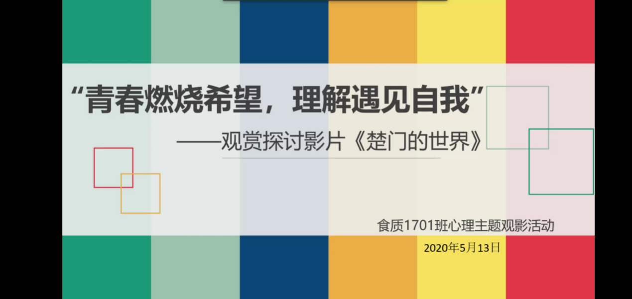 为缓解同学们受到疫情影响产生的不适情绪,拉近班集体成员之间的心理距离,在“5·25全国大学生心理健康日”前夕,食品学院特举办“青春燃烧希望,理解遇见自我”心理主题观影活动。