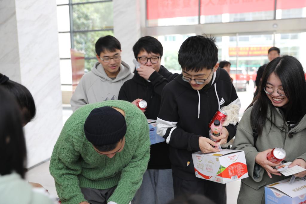 学院为每一位考研学子精心准备了定制版“考研大礼包”:纯牛奶、能量棒、印有学生姓名的罐装可口可乐以及由各班班主任亲笔书写的专属加油明信片,每一份礼品都饱含着学院对考研学子的深深祝福和殷切关怀。同学们与手持考研加油牌的班主任、辅导员老师以及班级同学合影留念,喜悦的笑容展现出备考的信心与冲刺的决心。