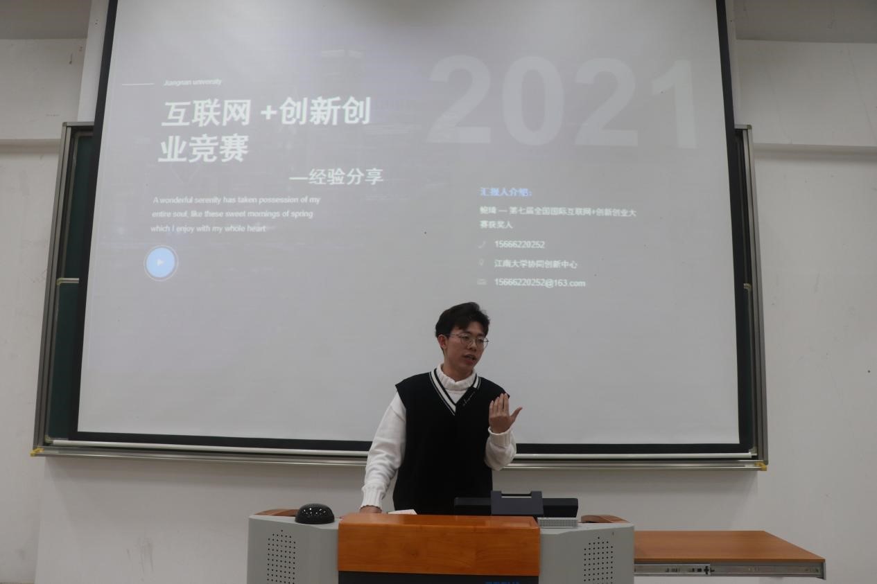 首先,杨光宝就竞赛的目的、意义、学校相关政策做了简介,提高同学们对科创竞赛的重视程度。接着,第七届中国国际“互联网+”大学生创新创业大赛全国赛获奖代表鲍琦、2020年全国大学生生命科学竞赛(科学研究类)一等奖获奖代表王丽诗、2021年全国大学生生命科学竞赛(创新创业类)一等奖获奖代表陈烨、第八届IFF营养与健康两岸学生创新大赛三等奖获奖代表曹语轩依次进行经验分享。他们结合自身经历,从科创竞赛具体流程、产品设计、团队分工、实现方法等方面进行了详细的解答,并向同学们介绍了查阅资料的途径,减少了同学们在竞赛路上的阻碍。在问答环节中,竞赛代表们耐心解答了同学们的各类问题。