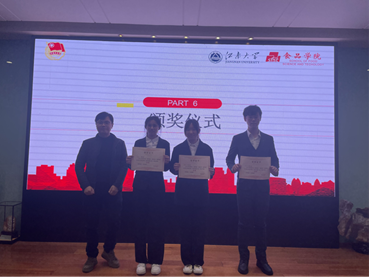 最后,嘉宾上台为获得“红旗团支部”的班级进行颁奖,并进行合影留念。食科1905、食质2001团支部荣获一等奖,食质1902、食科2009、食科2004团支部荣获二等奖。