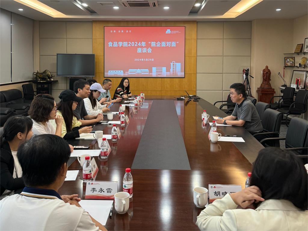 5月29日上午,食品学院2024年上半年“院企面对面”座谈会在学院九楼会议室顺利举办。学院副董事长单位大咖国际食品有限公司研发总监范军营、人力总监赵佳、研发经理尹永智、招聘经理宛铭,副董事长单位欧陆科技集团(中国区)食品检测事业部市场部负责人张薇,副董事长单位欣融国际控股有限公司董事长助理丁亚坤,副董事长单位喜家德集团招聘总监鄢甜,常务董事单位嘉吉投资(中国)有限公司校招负责人郑晓璐,常务董事单位山东天博食品配料有限公司江苏省区经理李永雷,上海美农生物科技股份有限公司招聘经理胡晓丽,食品学院党委副书记兼副院长李雷、社会合作专项辅导员曹敏等出席座谈会。