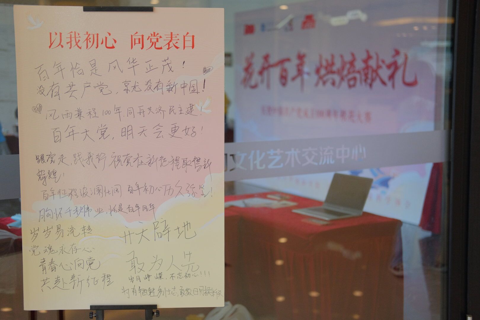 “庆百年”组用饼干堆出长城,绵延万里的巍巍长城,展现了中国人的家国情怀与中华民族坚韧不屈的傲骨。“弄潮百年”组用奶油画出了一艘小船,一百年前,中国共产党正是在一艘红船上诞生,经历了一百年的风风雨雨,中国共产党仍然坚定地向前,团结带领全国各族人民创造幸福生活和中华民族美好未来。“生临”组用蓝色与褐色渐变,象征蓝天与土地,上方摆放了中国共产党成立100周年庆祝活动标识,下方用花枝象征美好与希望,表达了对美好未来的祝愿。“万有引力”组以五角星的黄色为主色调,搭配代表青春的纸飞机和美好祝愿的甜甜圈,希望青年能够将青春梦融入中国梦,让理想展翅飞翔。