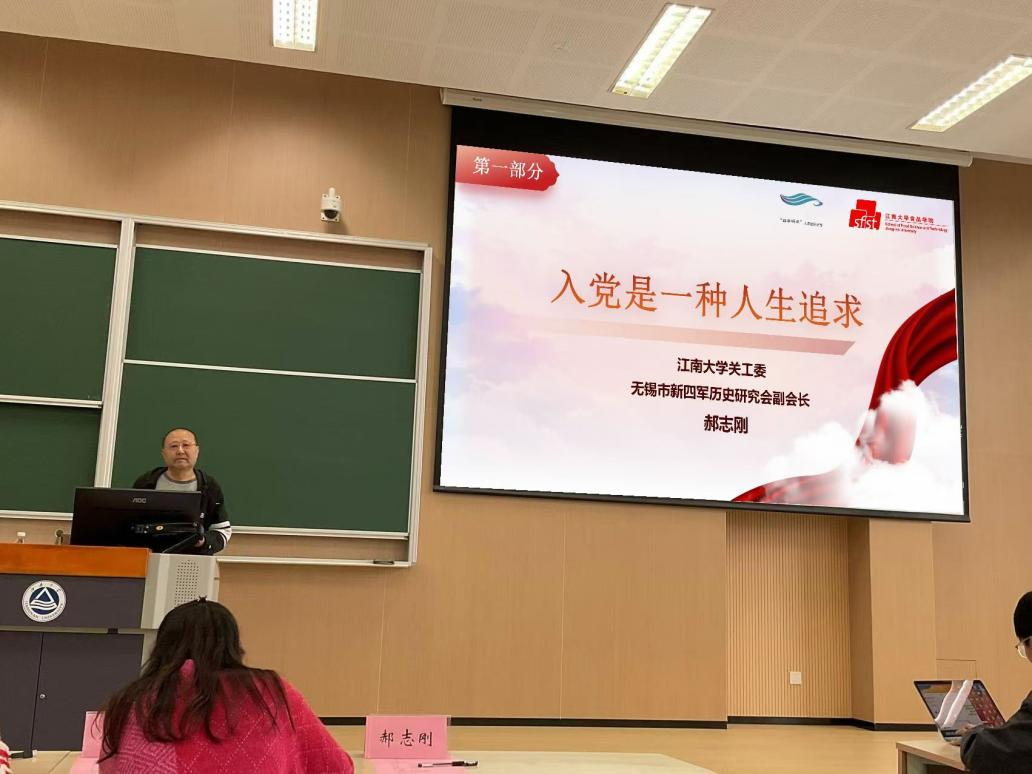 为扎实做好2024级新生转型教育工作,深化大学生理想信念教育,引导青年学生积极向党组织靠拢。10月28日下午,食品学院在第二教学楼2A127举办2024级新生入党启蒙教育。无锡市新四军历史研究会副会长、校关工委郝志刚受邀担任主讲嘉宾。食品学院党建辅导员陈婷、崔家玮,关工委秘书(兼)胡卉君,研究生党员代表余柳锋及2024级全体本科新生参加活动。