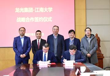 2021年3月11日上午,龙光集团和江南大学战略合作签约仪式在我院隆重举行。龙光生鲜食品集团总裁林经熙、招商中心总经理张平、冷链仓储事业部总经理刘富荣,江南大学校长助理张光生、产业技术研究院院长刘龙、食品学院院长刘元法、食品学院副院长程力等代表参加了签约仪式。