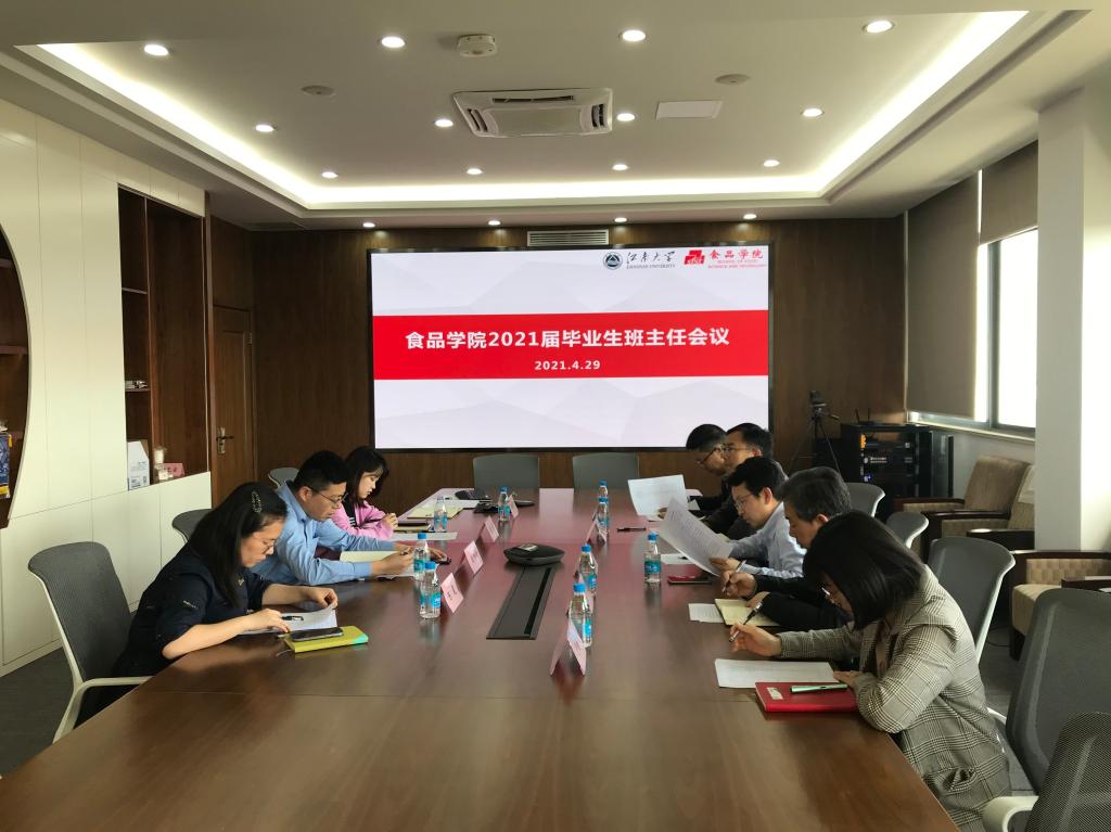 为做好2021届食品学子毕业服务、就业督促工作,维护毕业生离校前的安全稳定,近日,食品学院组织召开2021届毕业生班主任会议。学院党委副书记、副院长魏珍吉,毕业年级辅导员胡晓丹以及全体毕业班级班主任参加了会议。