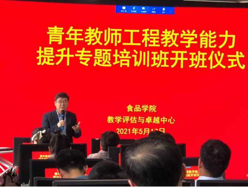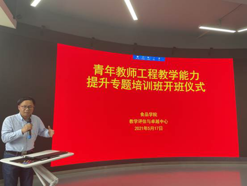 为进一步提升学院中青年骨干教师工程实践能力和创新实践能力,促进课程建设,培养一流本科人才,食品学院与教学评估与教师卓越中心联合举办的青年教师工程教学能力提升专题培训班于5月18日在食品学院虚拟仿真实验室开班。来自食品、生工、机械、设计、纺织、理学院、商学院等80余名青年教师参加。食品学院副院长王立主持活动。