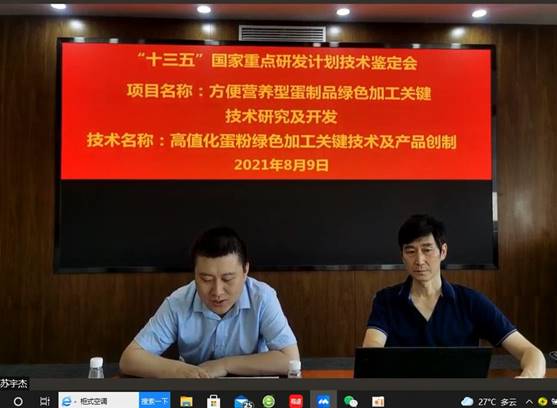 8月9日,中国轻工业联合会以视频会议的方式主持召开了“高值化蛋粉绿色加工关键技术及产品创制”项目技术鉴定会。该项目由Kaiyun官方网站登录入口杨严俊教授主持,江南大学、江苏大学、荣达禽业股份有限公司、江西农业大学、西北农林科技大学五家单位共同完成。江南大学科研院副院长范大明、项目负责人杨严俊教授及项目主要成员参加了鉴定会。