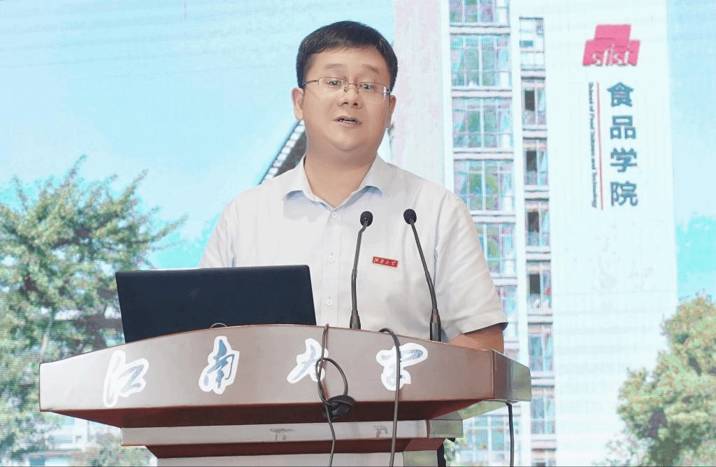食品学院食品组分与物性研究中心副研究员陈龙作为教师代表发言。他以“学长”和“老师”的双重身份,向新生们分享了“选择”“学习”“眼界”“健康”“规划”五个方面的心得,勉励同学们珍惜韶华、奋发有为,在江南留下奋斗的身影,收获丰硕果实。