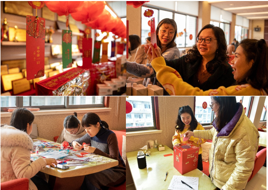 此次活动内容丰富,包括了猜字谜抽奖、DIY创意手工、写春联送祝福、新年贺岁写真等环节。 在浓厚的新春氛围衬托下,老师们积极响应、广泛参与。