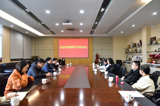 近日,我院于食品主楼D910隆重举行援疆干部加油会,食品学院党委书记傅莉莉、院长刘元法以及院领导班子参加了会议,会议由傅莉莉书记主持。