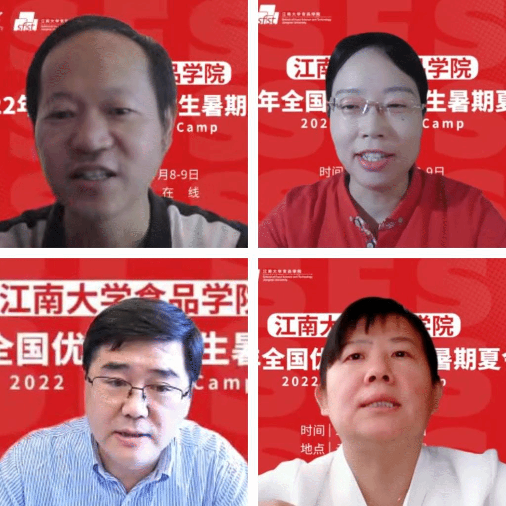 7月8日上午,夏令营举行了开营仪式,由食品学院副院长孙秀兰教授主持。江南大学研究生院院长吴小俊致欢迎辞,他对参加此次活动的同学表示热烈的欢迎,简要介绍了学校的办学条件、科学研究等情况,希望营员们主动学习,在食品学院碰撞出新的火花。食品学院党委书记傅莉莉做开营讲话,她介绍了学院的学科发展、科研平台、师资力量等情况,鼓励同学们在食品学院获得知识、结交朋友,体会“江南食品人、敢为天下先”的食品精神。食品学院院长刘元法教授以《未来食品》为主题进行了分享,他深刻阐释了未来食品与未来食物系统、未来食品应对的挑战、创新战略方向,启发同学们对未来食品发展进行思考,鼓励大家勇于创新创造,敢想、敢干、敢拼,书写时代答卷,将未来食品发展作为人生奋斗不息的目标。孙秀兰教授进行了题为《跨入新“食”代,铸就大“食”界》的分享,她围绕校园概况、学科平台、研究生培养和发展等方面展开介绍,告诉同学们要选专业、择平台、找校友,借力高精尖科研平台、优秀导师团队、浓厚的学术氛围,开启科研新征程,努力成为一名优秀的研究生。