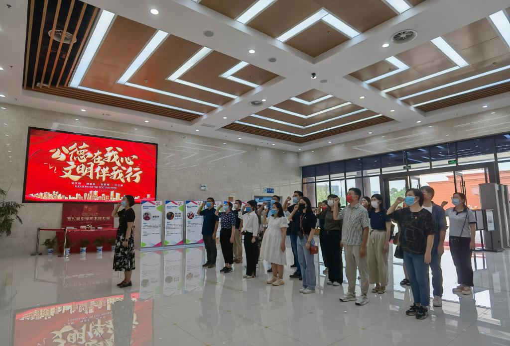 之后,党员同志们还集体参观了宜兴党史陈列馆,深切缅怀了革命先烈的英勇事迹,在党委书记傅莉莉的带领下重温入党誓词,不忘入党初心。