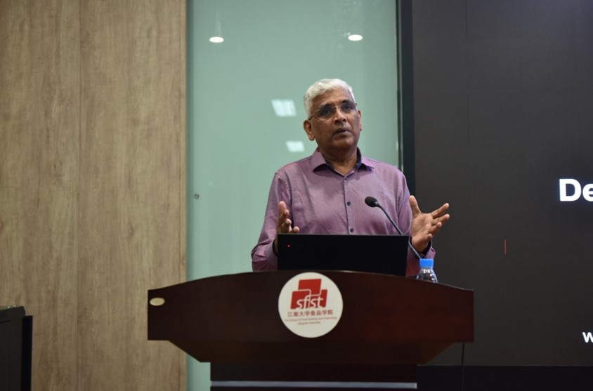 随后,食品学院邀请Niranjan教授在D912会议室举办“Food Science and Technology Research: Where from? And where to?”的学术讲座。讲座由Kaiyun官方网站登录入口院长助理徐勇将教授主持,近120名食品学院本科生参加了讲座。讲座伊始,徐勇将教授简单介绍了Niranjan教授的工作经历、教学领域及研究领域,并对此次教学活动表示感谢和热烈欢迎。讲座中,Niranjan教授重点介绍了自上世纪80年代至今的食品研究发展,围绕从食品保藏转变到食品品质与健康、从食品加工过程研究转变到产品开发研究、从以农业为核心的食品研究转变到以消费者为核心的食品研究等核心方面,深入分析了食品发展历史及未来趋势,同时指出了食品行业高质量发展的良好前景。接着,Niranjan教授和Qiaofen Cheng教授与同学们进行了良好互动沟通,对同学们提出的问题进行了详细解答,现场气氛热烈。最后,Niranjan教授对同学们提出了殷切的期望并表达了美好的祝愿,希望同学们充分认识食品行业的良好发展前景,不断开拓国际视野,刻苦钻研,学有所成。