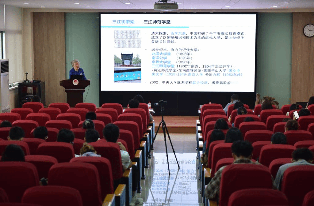 王武以习近平总书记关于研史学史的重要论述作为引子展开其报告。她溯源江南大学尤其是食品学科的历史发展进程,从世纪磐石、六秩乃达、追求卓越、止于至善等四大方面一根轴线系统阐述了百余年的校史激荡与学科攻坚。讲座过程中,王武结合自身求学与工作经历,向在场师生还原了世行贷款、入列“211”、三校合并、迁址蠡湖等一个个鲜活的历史镜头与个中细节,令听众们无不感叹历史之绵长、发展之不易。王武叮嘱食品学院全体师生,不忘来路,奋进争先,充分发扬一流学科之精神,为人才培养和办学治校做出更大贡献。