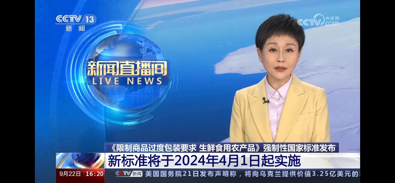 近日,由农业农村部牵头、江南大学作为第一参与单位制定的《限制商品过度包装要求生鲜食用农产品》(GB 43284-2023)强制性国家标准,由国家市场监督管理总局(国家标准化管理委员会)批准发布,并在央视新闻直播间、中国经济网、新华社、中国之声等各大平台报道。该标准将于2024年4月1日起正式实施,并为强化商品过度包装全链条治理、引导生鲜食用农产品生产经营企业适度合理包装、规范市场监管提供执法依据和基础支撑。