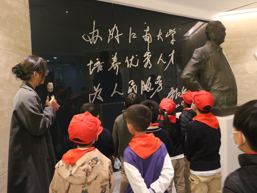 在“荣毅仁特称团支部”(食科2104)大学生讲解员的带领下,小朋友们首先参观江南大学荣毅仁纪念馆,走进荣老实业救国、从政为民的生平经历及其家族与江南大学的历史渊源。少先队员们为荣氏家族勇往直前的创新精神、坚韧刚毅的不凡气度、崇德厚生的济世之志所打动,立志要向先辈们学习,勤奋读书,主动实践,长大后报效祖国、回馈社会。