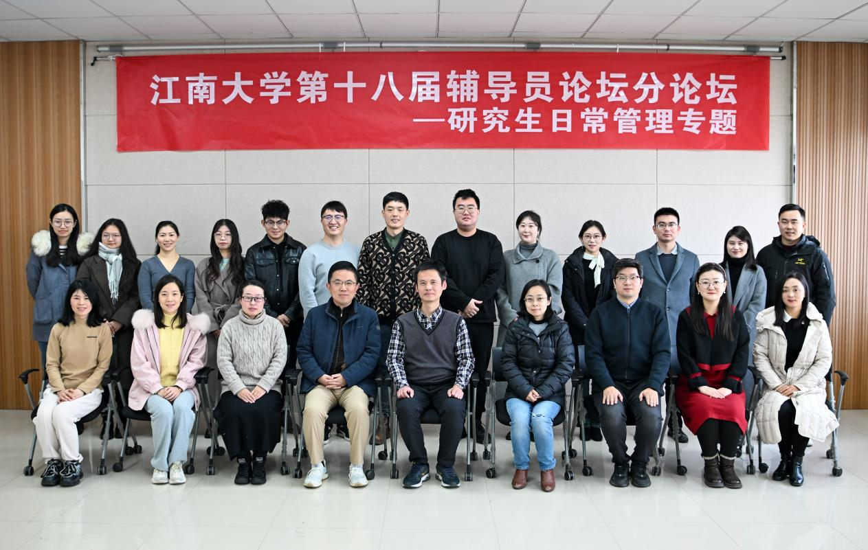 2023年12月27日上午,分论坛顺利举办第一场活动。党委研究生工作部副部长、研究生院副院长陈周,食品学院党委副书记、副院长李雷,商学院党委副书记、副院长徐静及来自各学院20余名专兼职辅导员参与活动。