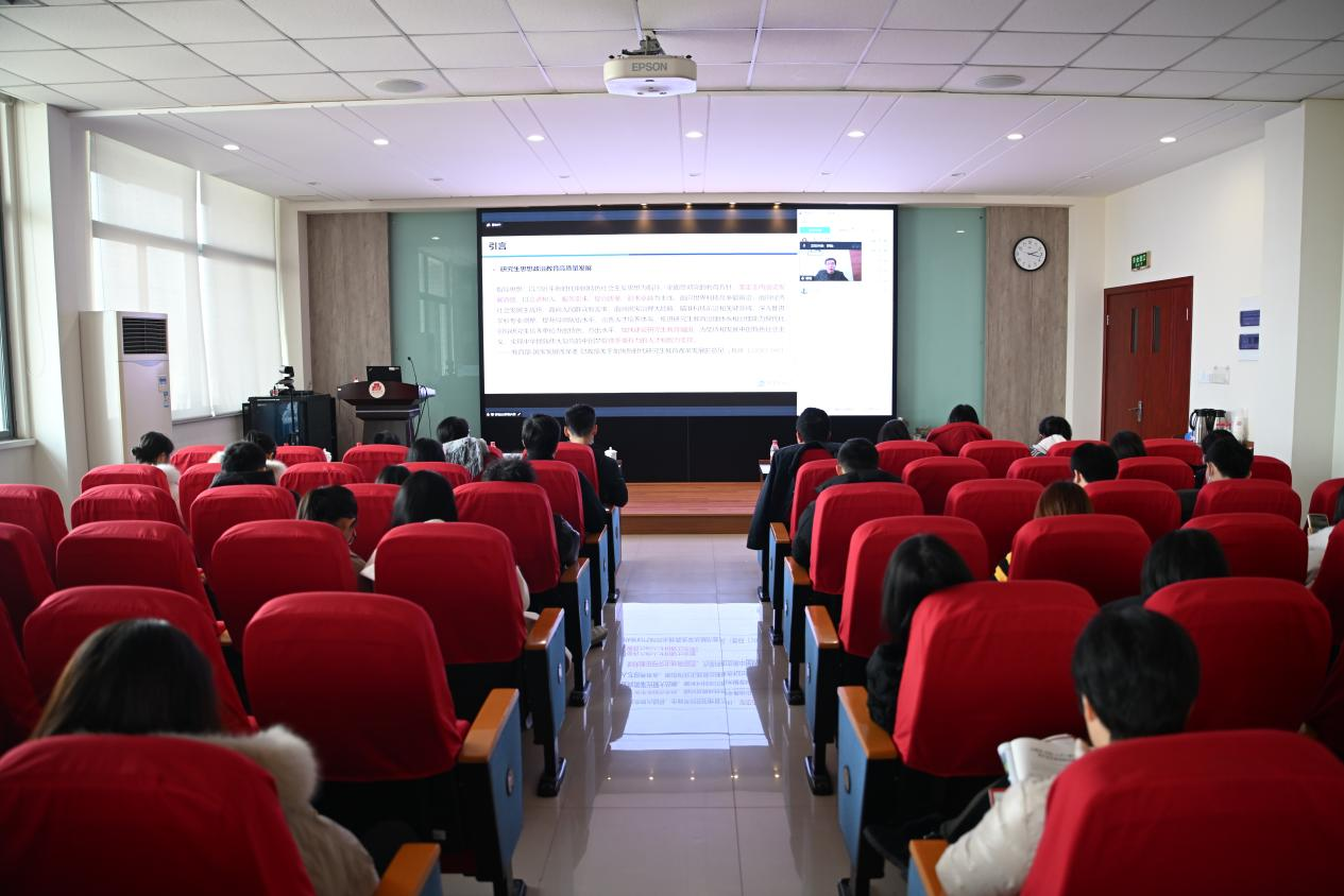 大连理工大学马克思主义学院党委书记郭驰受邀在线上作《新时代研究生思想政治教育高质量发展的思考与实践》主题报告。他结合自身15年的辅导员工作经历和十余载的思想政治理论课教学研究成果,从研究生思想政治教育高质量发展的价值导向、时代样态、路径选择等三个方面展开阐述。报告主题鲜明、脉络清晰、内容详实、案例生动,引领与会辅导员进一步强化了研究生思想政治教育的主体责任和方向定位。