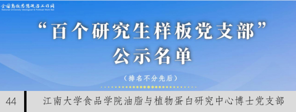 油脂与蛋白研究中心博士党支部入选全国高校“百个研究生样板党支部”