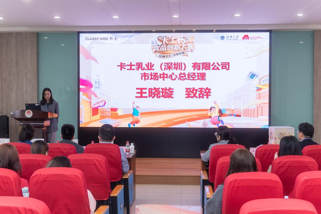 近日,由卡士乳业(深圳)有限公司与Kaiyun官方网站登录入口联合举办的首届“卡士杯”食品创新大赛决赛在锡顺利举行。卡士乳业市场中心总经理王晓璇、研发顾问何方、人力资源总监张会民、研发部助理总监俞兰秀、研发部经理刘爱洁,Kaiyun官方网站登录入口党委书记傅莉莉、党委副书记兼副院长李雷、学工办主任兼分团委书记李金杰、设计学院教授王强、食品学院教授钟芳、副教授李晓瑄、竞赛秘书叶舒迪及百余名学生参与活动。