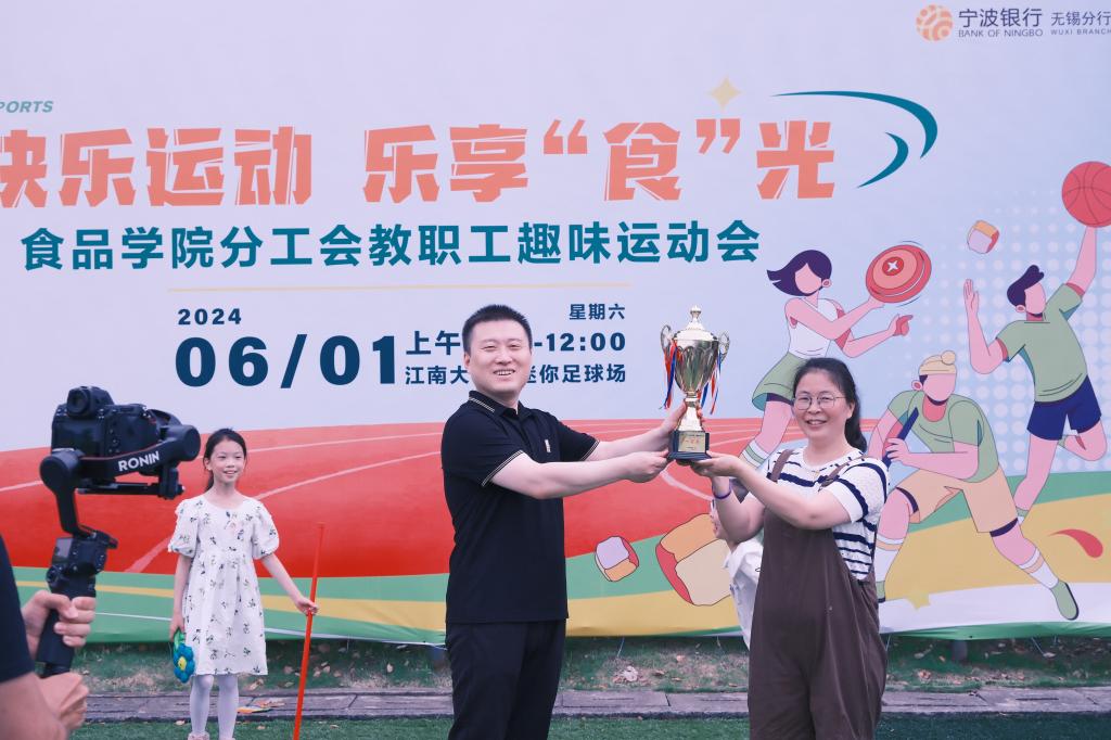 2024年6月1日上午,江南大学东迷你足球场上欢声笑语此起彼伏、热闹非凡。食品学院分工会精心筹办的“快乐运动,乐享食光”趣味运动会在此隆重举行。在学院党委书记傅莉莉、院长范大明、党委副书记李雷、副院长谢云飞等党政领导和分工会主席洪雁的带领下,由百余名教师组成的八支战队齐聚一堂,共同上演了一场别开生面、精彩纷呈的运动大比拼。