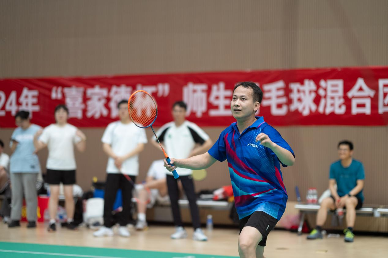 团体赛不仅是力量与技巧的考验,更是统筹与战术的较量。开赛之前,队员们积极讨论战术,为赢得积分而努力。比赛伊始,选手们迅速进入状态,师生配合、张弛有度,时而跳跃扣杀,时而轻盈吊球,矫健的身姿勾勒出一幅幅充满力量的画面。场内你来我往,高潮迭起;场外加油喝彩,呐喊助威!