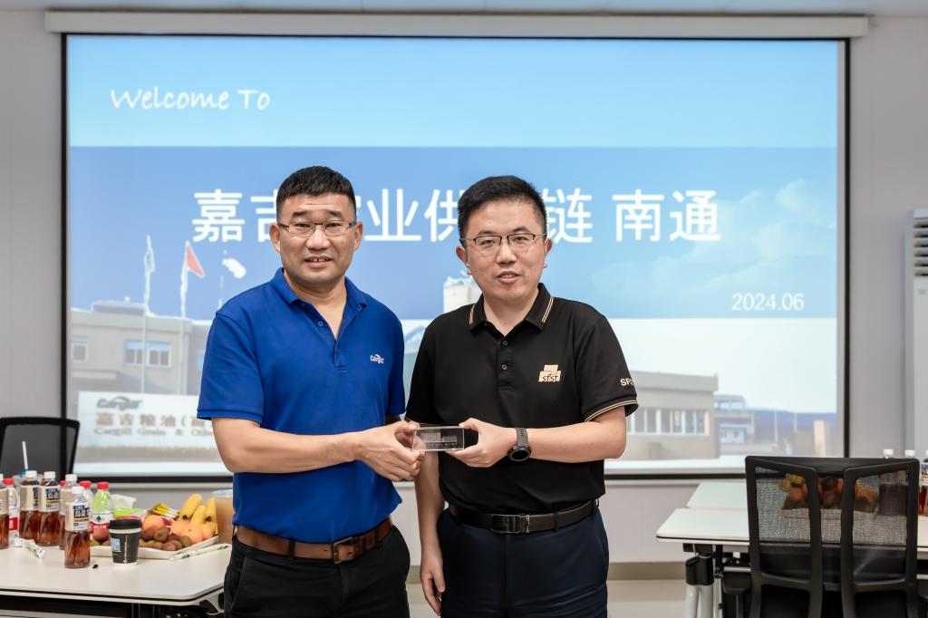 食品学院优秀校友,嘉吉农业供应链中国区生产运营总监卢灿明、南通工厂厂长兼总经理巴特等对来访师生表示热烈欢迎。他们简要介绍企业与工厂情况,并表达了对吸引更多江大学子加入嘉吉的热切期待。