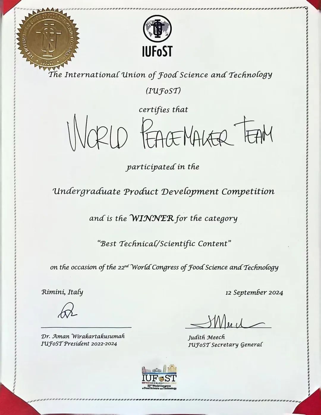 近日,第22届世界食品科技创新大赛在意大利里米尼落幕。江南大学食品学子在这一国际顶级赛事中表现卓越,荣获本科生组“最佳科学技术奖”1项,研究生组全球提名奖、亚军各1项。