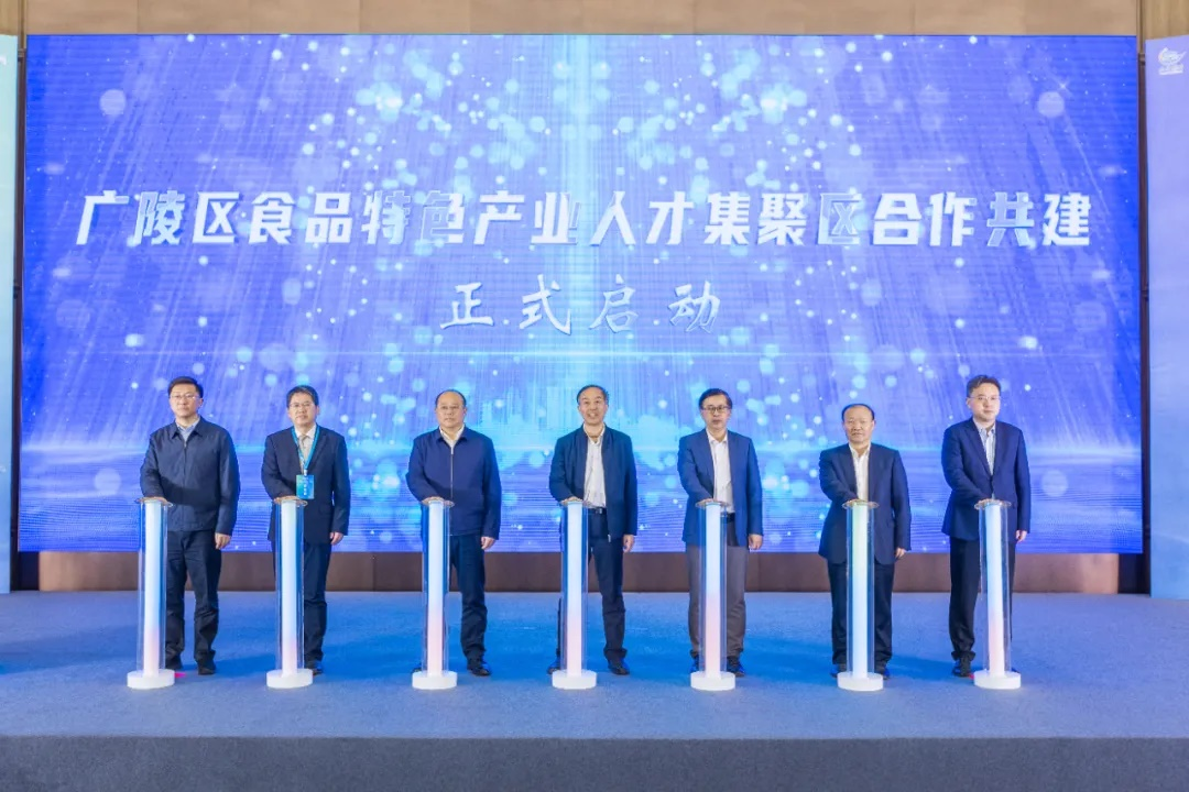 活动现场,金征宇、冯少东、罗雪明、顾正彪、邹小波、张伟,广陵区委副书记、区长郎俊共同启动广陵区食品特色产业人才集聚区合作共建仪式。今后,广陵区将与江南大学、江苏大学、扬州大学等合作共建,围绕新型食品产业发展,推动校、地、企三方在人才引育、成果转化、技术服务和生产等方面全面合作,实现创新人才共引共用、优势资源共建共享。