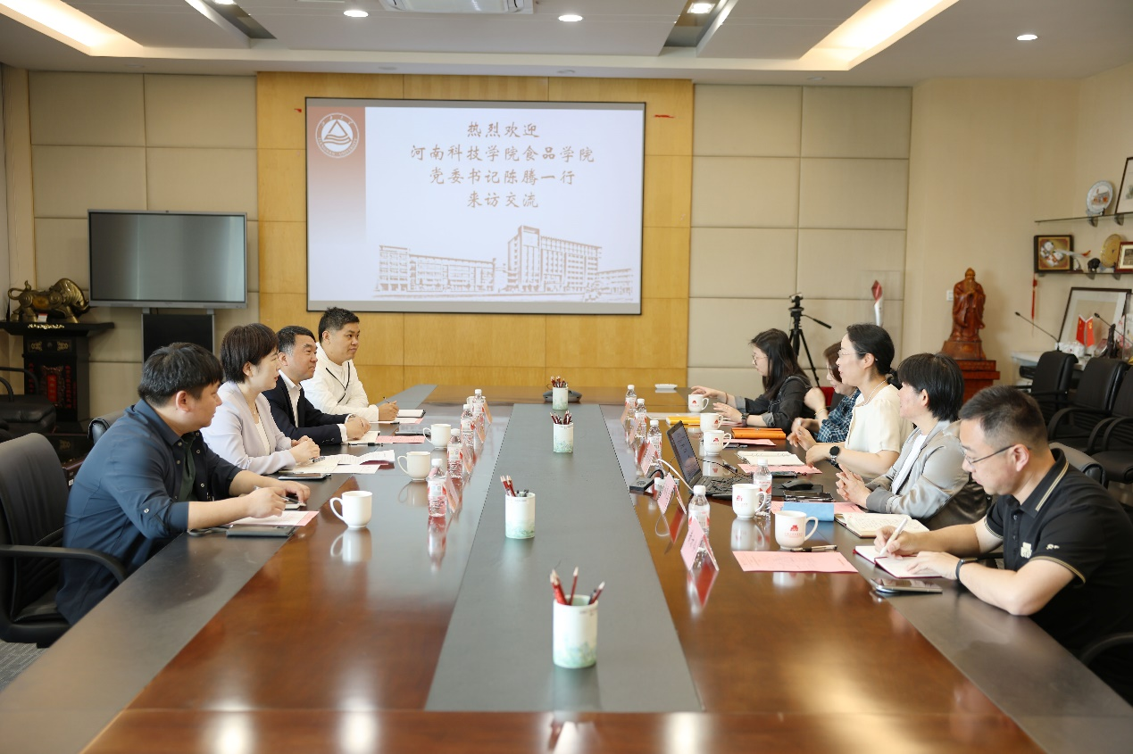 4月17日,河南科技学院食品学院党委书记陈腾、院长李光磊一行来访我院。我院党委书记傅莉莉、院长孙秀兰等参与座谈。