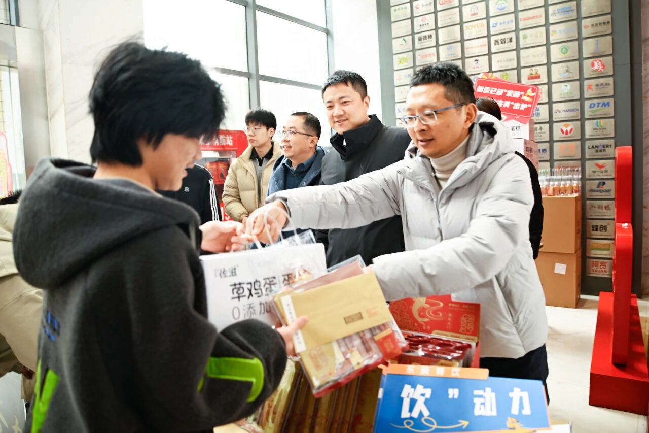 12月5日中午,食品学院一楼大厅洋溢着融融暖意。学院党委副书记、副院长陈勇,副院长、食科2202班班主任程力,副院长柏玉香及全体辅导员一同为“研”途路上认真备考的学子们送上暖心补给和真挚祝福。“最后阶段,既要全力以赴,也要保重身体”“把握节奏,一定上岸!”一句句朴实的叮咛、一声声真诚的鼓励,如冬日里的暖阳,驱散备考的疲惫,坚定了学子们冲刺的决心,跑赢考研这场“马拉松”。
