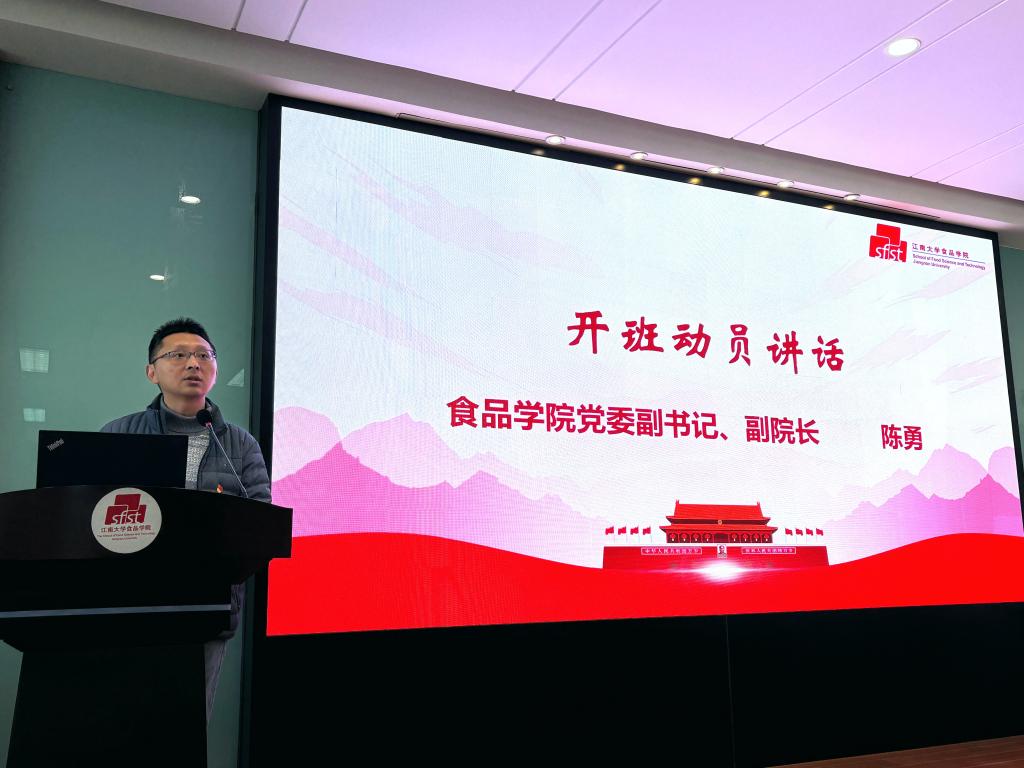 为深入学习贯彻习近平新时代中国特色社会主义思想和党的二十大和二十届历次全会精神,衔接“十四五”“十五五”规划,加强学院党员队伍建设,为党输送新鲜血液,1月11日,食品学院2025年入党积极分子培训班开班仪式及党课培训在D912报告厅举行。食品学院党委副书记、副院长陈勇,马克思主义学院思想道德与法治教研部主任白冰,食品学院党建专项辅导员陈婷、黄玄,优秀学生党员、食品学院2025级研究生刘振宇以及2024年入党积极分子培训班优秀学员代表张杭伟出席仪式,全体2025年入党积极分子参训。