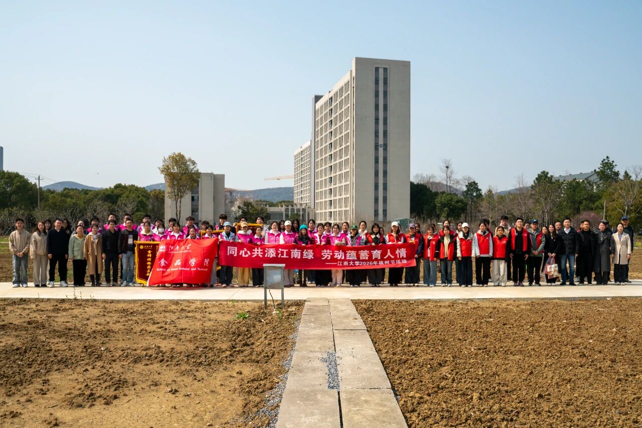 春风拂暖,万物复苏。在全国第48个植树节来临之际,江南大学师生以实际行动深入贯彻生态文明思想,牢固树立和践行绿水青山就是金山银山理念,营造“以树育人、以景润心”的校园氛围。3月12日,后勤管理处环境中心、食品学院、商学院携手举办“同心共添江南绿,劳动蕴蓄育人情”江南大学2026年植树节活动,后勤党委副书记、纪委书记曹沛,食品学院副书记兼副院长陈勇,食品学院全体辅导员,本科生第一、第二、第三党支部,营养2302、营养2402“雷锋”特称团支部、食品卓越创新班2401“荣毅仁”特称团支部的青年学子们共同参与活动。