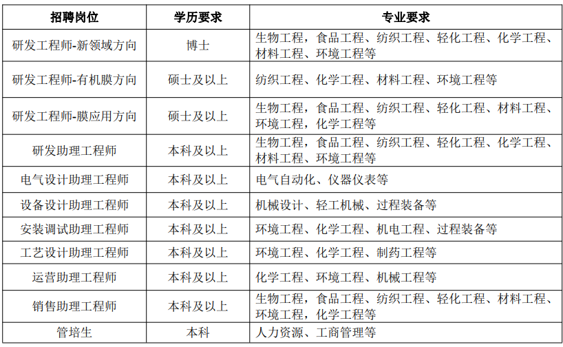 江苏久吾高科技股份有限公司(以下简称为“久吾高科”或“公司”),1997 年成立于江苏南京, 2017 年成功登陆 A 股创业板。公司始终致力于膜分离技术的研发与应用,已由成立之初的陶瓷膜及其 成套设备提供商逐步发展成为致力于为广大客户提供包括技术研发、工艺设计、设备制造、工程施工、 运营等在内的膜集成技术整体解决方案。公司是江苏省首批认定的国家高新技术企业、国家“专精特新”小巨人企业,并获得 4 次国家科技进步奖和 1 次国家科技发明奖。 公司产品与技术已广泛应用于以下领域: 过程分离领域:氯碱化工盐水精制、石油化工膜催化反应、煤化工油水分离、精细化工产品净化, 抗生素、酶制剂、医药中间体、氨基酸、有机酸、维生素、中草药等生物制品生产,高品质食用盐、 酱油、食醋、(无硫)蔗糖、淀粉糖、(保健)酒类、果汁等产品生产,食品添加剂、甜味剂、天然 色素等天然产物提取,茶叶深加工。 环保领域:城市小流域及河道治理、含油废水、冶金废水、化工废水、造纸废水处理,大型超纯 水制备,电厂浓盐水零排放,市政污水减排治理,高温气固分离,工业气体净化。 现因公司业务需要,诚聘英才。我们深信:只要您能忠诚于久吾高科的事业,并充分展示您的智 慧和才华,尽情发挥您的潜力和激情,公司会使您得到更大的发展和回报!我们期待您的加入!