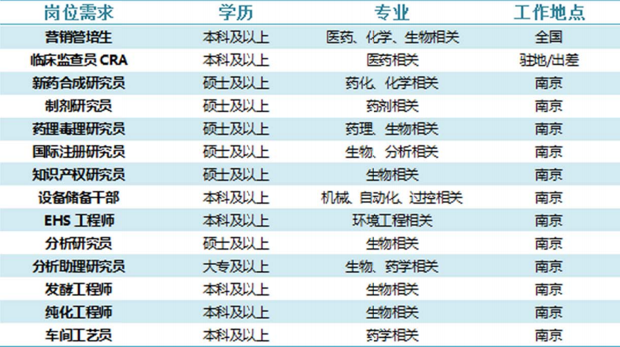 就业【2021】 124号 南京优科生物医药2021届校园招聘简章