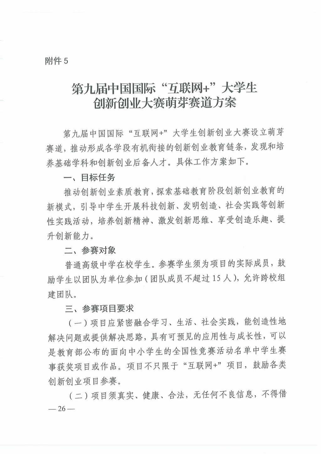教育部关于举办第九届中国国际“互联网+”大学生创新创业大赛的通知
