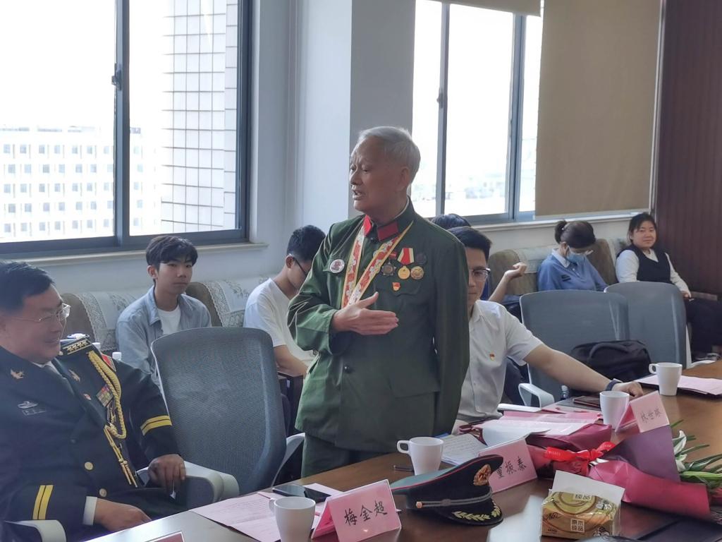 两位老兵的发言引起现场师生深深的共鸣。互动环节,有同学表示,身为新时代青年有幸与中国的新时代相认相知、相进退,应当心怀祖国、肩负使命,大步前行、不辱使命。两位老先生勉励大家,一代人有一代人的历史使命,中国青年的使命与国家前途、祖国发展息息相关。当代青年人应该心怀梦想、勇担责任,通过自我完善与自我提高为祖国的繁荣发展贡献青春力量。