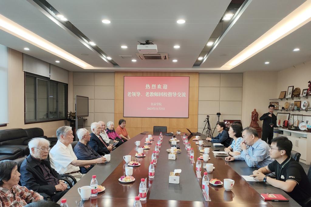 座谈会上,傅莉莉首先向老领导、老教师汇报食品学院近年来的建设情况和发展成果。她表示,学院的每一分成绩和进步都是在前辈们开创的基础上奋斗得来的,学院会坚持弘扬“江南食品人,敢为天下先”的优良传统,主动创新,勇毅前行,不断加快建设世界一流学科的步伐。